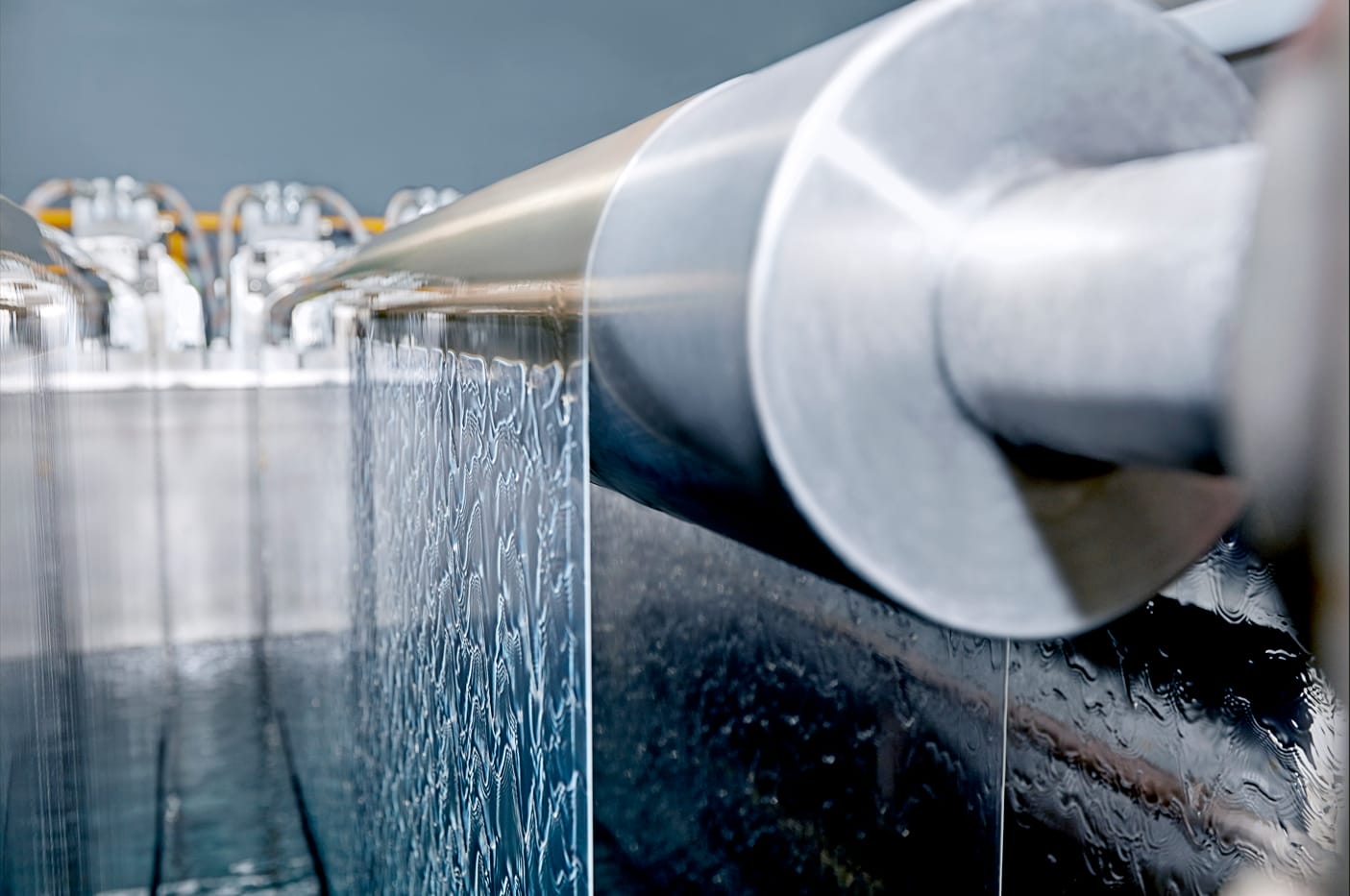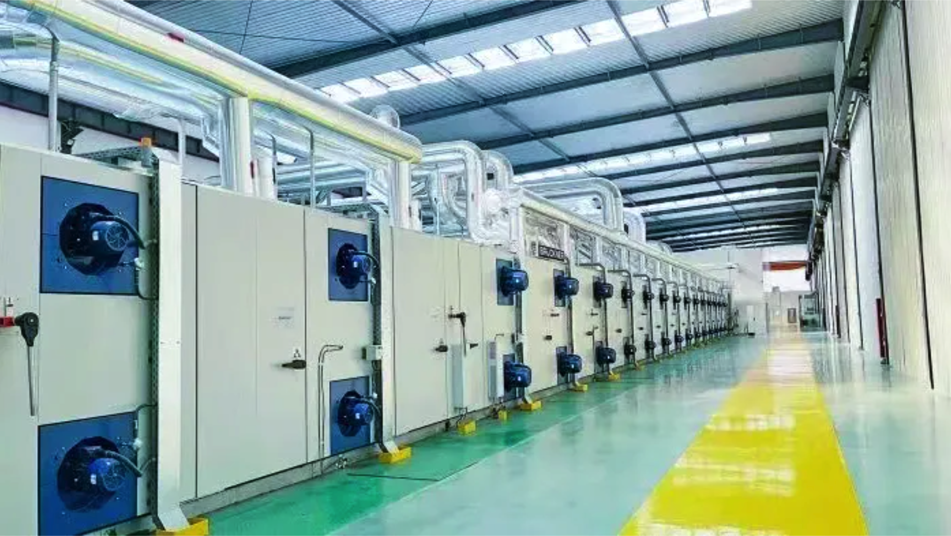 一臺(tái)約兩層樓高的巨型機(jī)器轟鳴著,源源不斷地“吐出”寬約8米、光滑平整的膜材,在燈光的映射下宛若平靜的河面,緩緩“流”過(guò)數(shù)十米長(zhǎng)的車間。