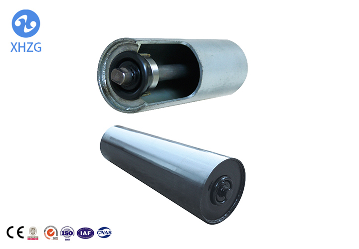 緩沖托輥,緩沖托輥用于帶式輸送機受料處減緩落料對輸送帶的沖擊,主要針對洗煤廠、焦化廠、化工廠等腐蝕性環境而研制的一類托輥,它本身具有的韌性是普通金屬的10倍以上,壽命為傳統柱鞋的五倍,耐腐蝕阻燃,抗靜電,自重輕等特點,廣泛用于礦山開采。托輥輥體專用的高分子材料,其機械性能類似于青銅,具有很好的耐磨性,而且具有良好的自潤滑性能,不傷皮帶。 緩沖托輥防腐性能優越。輥體及密封件都用高分子材料制作,耐腐蝕。在腐蝕性場合使用,使用壽命可達到普通托輥的5倍以上。